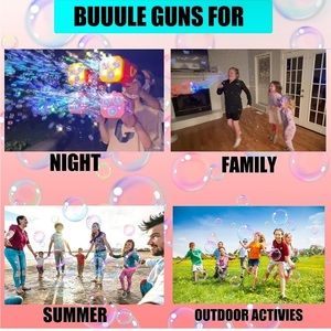 BUBBLE MACHINE GUN: Upgraded automatic bubble gun, you don't need to dip bubble liquid, avoid the trouble of dipping bubble liquid, all by itself to keep the joy. It was a wonderful toy not only for children, but also for adults and pets.