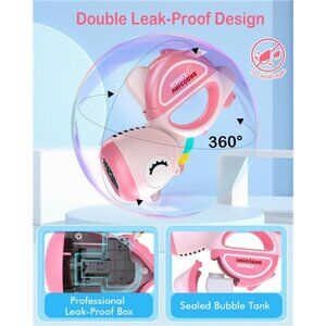 Bubble Machine Gun with Lights Music, Portable 360°Leak Proof Automatic Bubble