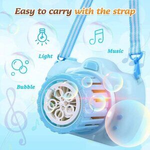 Cute Camera Bubble Machine: Unique camera shaped design, upgrade battery operated bubble blower for boys and girls. Built-in light and music make the bubbles look colorful and create a wonderful visual and auditory experience for kids.