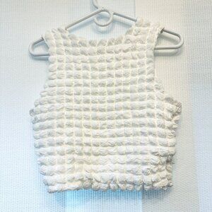 Size Large but fits closer to a medium bubble / popcorn crop top. Only worn once. Smoke and pet free home.