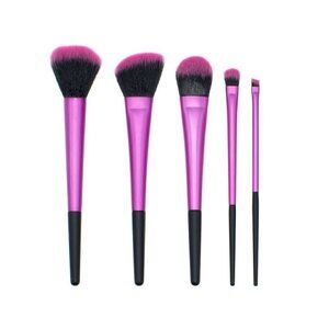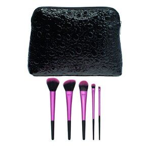 Black Bubble Textured Bag with 5 Pink Makeup Brushes