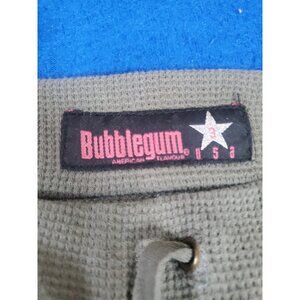 The Bubblegum Jeans Women's Size 3/4 Camo Cargo Capri pants are a trendy and comfortable option for casual wear. Made from a cotton blend with a camo pattern, these pants feature a zip and button closure, flat front, and tapered leg style. They also have unique flap pockets for added convenience. Perfect for warmer seasons like summer, fall, and spring, these pants in size 3/4 offer a regular fit and are machine washable for easy care. The retro theme and low rise make these capris a stylish choice for any woman's wardrobe.