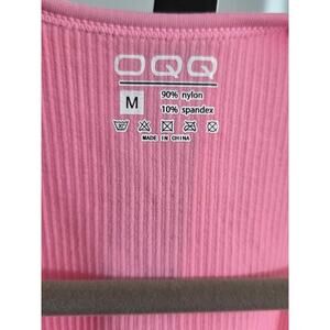 Bubblegum Pink Ribbed OQQ Bodysuit – Sleek & Sculpting One-Piece NEW/ MEDIUM