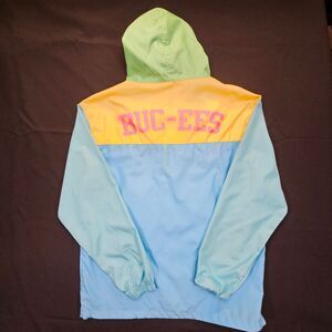 Crafted from 100% polyester, this lightweight jacket delivers breathability and wind resistance, ideal for mild to cool seasons. The Buc-Ees logo patch on the chest and bold "BUC-EES" lettering across the back add a unique branded touch, making it perfect for fans or collectors. Whether for running errands or enjoying outdoor adventures, this jacket combines playful style and practical features in a small women's size.