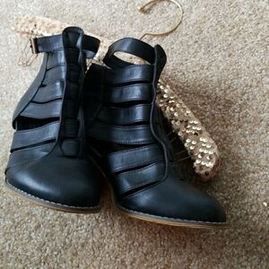 Bucco Cutout Ankle Straps Heel Narrow Booties