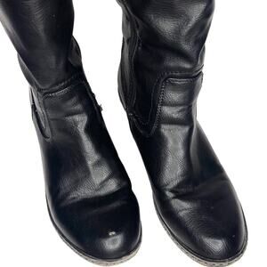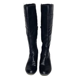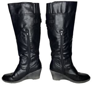 Bucco Torin Faux Black Leather Riding Boots Size 7.5 Chunky Wedge Heel Tall Boot