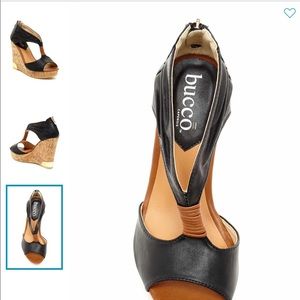 In great condition, only worn once. Back zipper ankle closure, 4 1/2 inch heel. Cork heel with gold hardware.