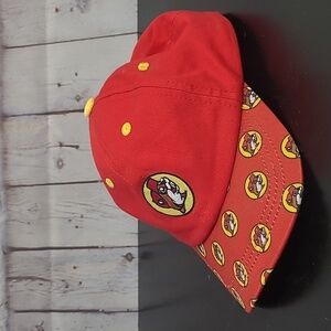 Buc-ees Beaver All Over Logo Print Embroidered UPF 50+ Youth Red Yellow Hat Cap