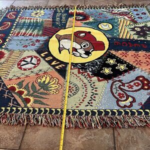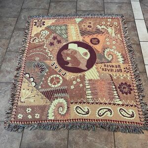 Buc-ee’s Beaver Believer Peace Love Colorful Woven Tapestry Throw Blanket 61x53”