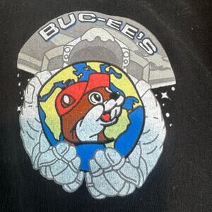 Buc-ee’s Beaver Graphic Long Sleeve T-Shirt Size S Black Space Astronaut Themed