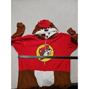 The Bucees Beaver Jumpsuit is a fun and colorful one-piece romper designed for adults in size L/XL. The design features a playful beaver, making it a unique and entertaining choice for sleepwear or loungewear. With the brand's playful approach and comfortable fit, this jumpsuit is sure to bring joy and comfort to any adult looking for a quirky addition to their wardrobe.