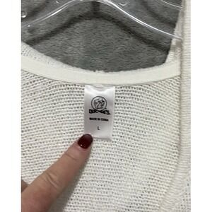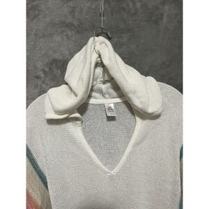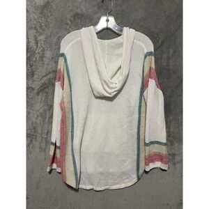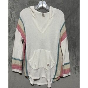 Buc-ees Pullover Hoodie Sweater Shirt Large Off White Pink Green Stripe Casual