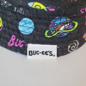 This Buc-ees bucket hat is the perfect accessory for your little one's outdoor adventures. With a graphic all-over print featuring outer space planets, this hat is both stylish and functional. It has a strap accent and is made with UPF 50 material to protect your baby's delicate skin from the sun's harmful rays.