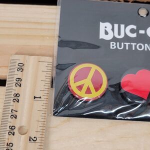 Buc-ee's Set Of 3 Button Pins: Peace, Love, Beaver NEW. Comes from a smoke free home.