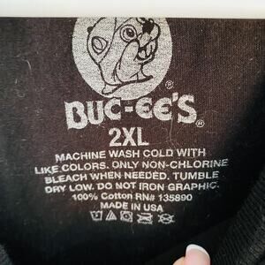 Neck label: Printed tag with BUC-EE'S branding and care info