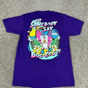 Bucees Shirt Mens Medium Purple Surfboard Surfing Gas Station Short Sleeve