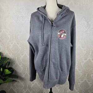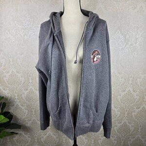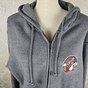 Buc-ee's Size 2XL Gray Zip Front Jacket Drawstring Hood Front Pockets Thumbholes