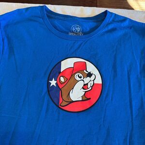 Buc-ees T-Shirt Sz L "Don't Mess with Texas" Blue Red short sleeve