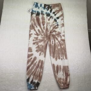 Buc-ee’s Tie Dye Blue Brown White Fleece Jogger Logo Sweatpants Size L