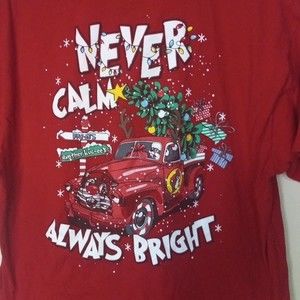 Buc-ees Tshirt Mens XL Never Calm Always Bright Red Christmas Holiday