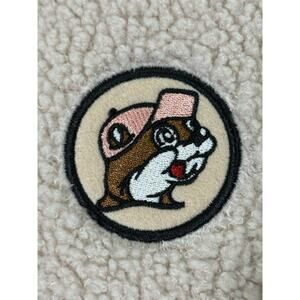 Stay cozy in this Buc-ee’s Sherpa Fleece Pullover in size Large. Featuring a stylish colorblock design with beige, pink, leopard print, and black panels, this half-zip pullover is perfect for chilly days, lounging, or showing off your love for Buc-ee’s.