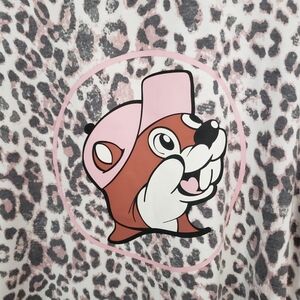 Buc-ee's Womens Pullover Sweatshirt Long Sleeve Pink Beaver Small Leopard Print