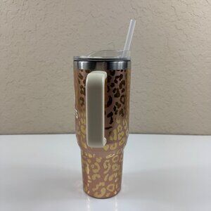 Bucees Yukon Outfitters Buc-ee’s Rose Gold Cheetah 40oz Tumbler Handle Viral EUC
