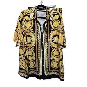 Buchon Outfit Set Short Sleeve Button Down Shirt and shorts 2XL. Gold Black