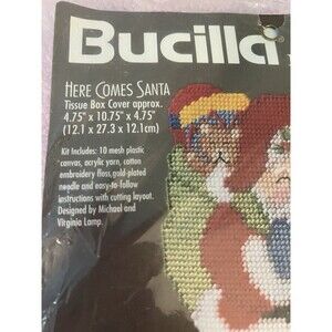 Bucilla Here Comes Santa Tissue Box Cover Plastic Canvas Kit Christmas 61251