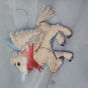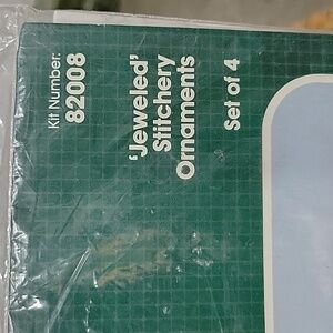 Bucilla Christmas Heirloom Kit Number 82008 Jeweled Stitchery Ornaments in original packaging. Set of 4. Two unicorns and two pegasuses.