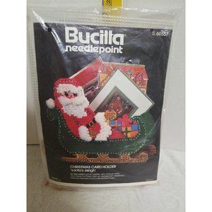 Bucilla Needlepoint Kit HERE COMES SANTA Sleigh Christmas Card Holder # 61032