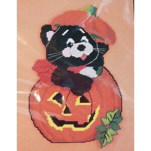 Bucilla Plastic Canvas Kit Halloween Black Cat Pumpkin Needlecraft Wall Art USA