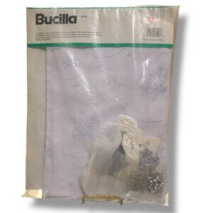 Bucilla Snowflakes & Holly Tree Skirt Embroidery Kit 45" 100% Cotton Fabric Vint