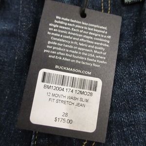Buck Mason 12 Month Wash Slim Fit Stretch Jean size 28 x 34 Tall Skinny Blue NEW