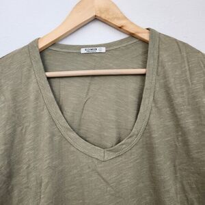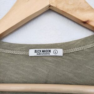 Buck Mason Army Green Slub 100% Cotton Deep V-Neck T-Shirt | Size L