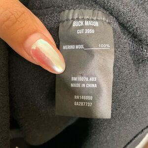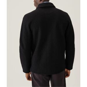 Buck Mason Felted Field Jacket Classic fit field shirt in 340 GSM felted merino wool, twice boiled for improved insulation and durability. Details include patch-and-flap chest pockets and a button front closure. Constructed with hand-sewn facings and cover-stitching with flat seams for comfort. Dry clean only Color: Black Size: Large Length: 30” Pit to pit: 23” Excellent Condition