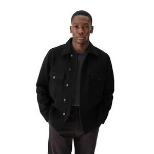 The Buck Mason Felted Field Merino Wool Shirt in black is a timeless and rugged staple. Crafted from soft, insulating merino wool, this long-sleeve button-up offers both warmth and breathability, making it ideal for layering in cooler weather. With a structured yet relaxed fit, this versatile piece works effortlessly for both casual and refined looks.