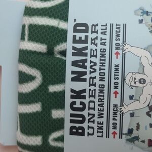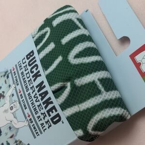 Buck Naked boxer briefs in green and white ho ho ho pattern. New in packaging