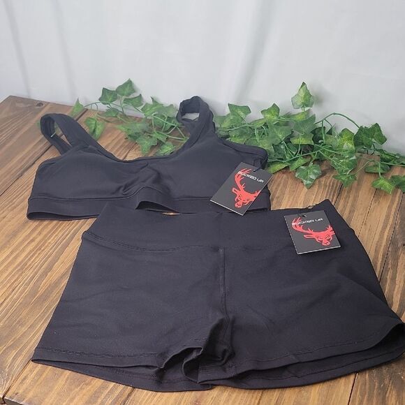 Experience comfort and style with this sleek black exercise set. Look amazing while working out!