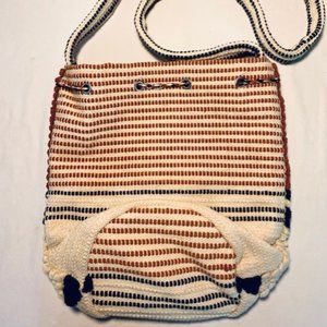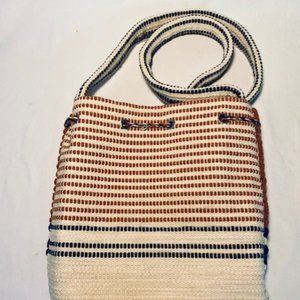Brand: Sole Society. 100% cotton. Cream, navy and rust exterior. Soft navy blue interior with pocket.