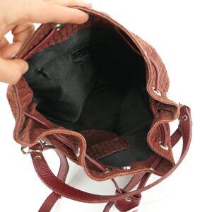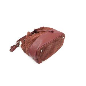 Bucket Bag Burgundy Made in Italy Woven Suede Leather Cinch BORSE In PELLE Purse