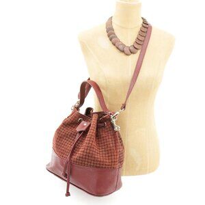Bucket Bag Burgundy Made in Italy Woven Suede Leather Cinch Drawstring Crossbody Purse. Great condition, no flaw makes a nice gift.
