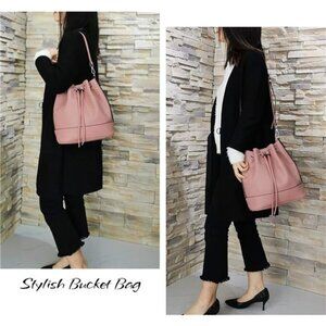 Bucket Bags and Drawstring with 2 Shoulder Straps Pink