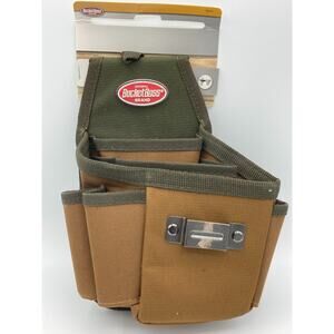 The Bucket Boss 54175 Tool Pouch is a durable and strong tool belt with three pockets, made of polyester material in a green color. Perfect for storing small power tools or accessories like drill bits and pencils, this tool pouch is designed for easy access to the contents. With a manufacturer warranty of 1 year, this high-quality tool storage solution is a reliable choice for any home or workshop setting.
