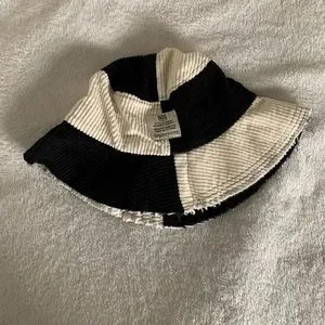 cute black and off white white distressed color block hat! worn once for a shoot!