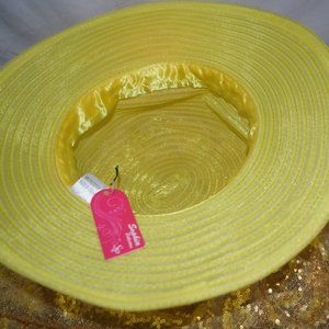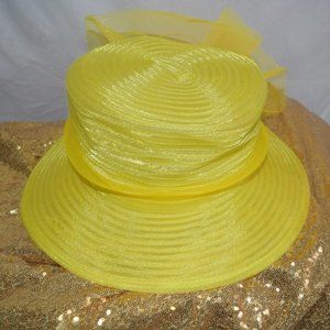 Yellow Organza Straw Bucket Hat French Elegant Mesh Flower