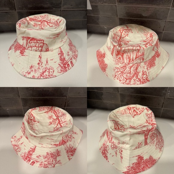 Stylish bucket hat featuring a charming pink and white design. Perfect for sunny days and outdoor adventures.