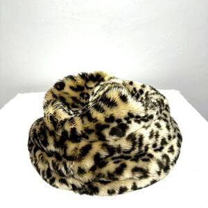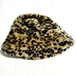 Bucket Hat Leopard Cheetah Fuzzy Animal Print Warm Winter Faux Fur Brown Soft