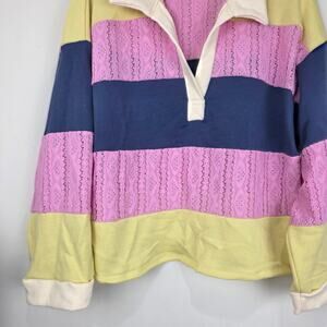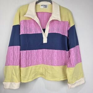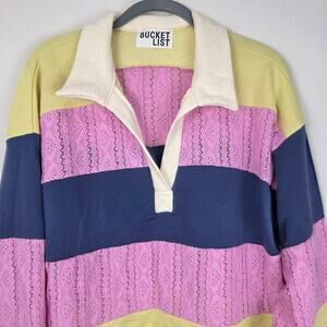 Bucket List Color Block Lace Embroidered Long Sleeve Top, Size Small, EUC