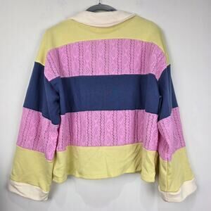 Color Block Stripe Spread Neck Collared Crop Top - Spread neck collar - Long drop-shoulder sleeves - Cropped silhouette - Loose fit
